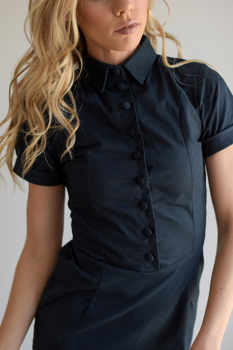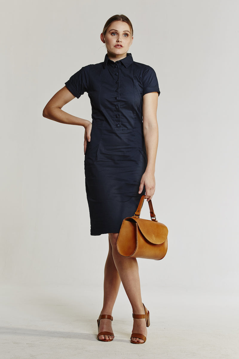 Urban country wear has never looked better than our button down navy dress. With a stretchy cotton material, it will fit your body in all the right places, whilst still remaining comfortable and flattering all at the same time.