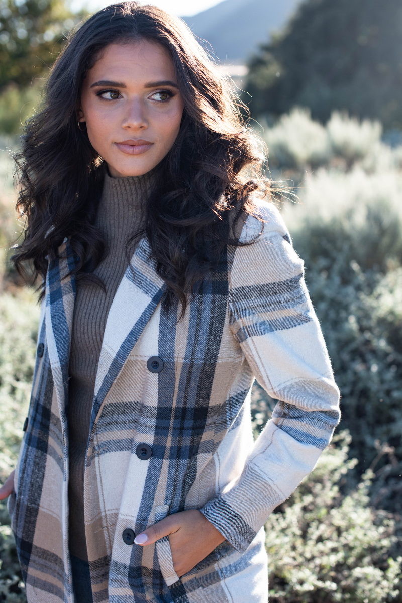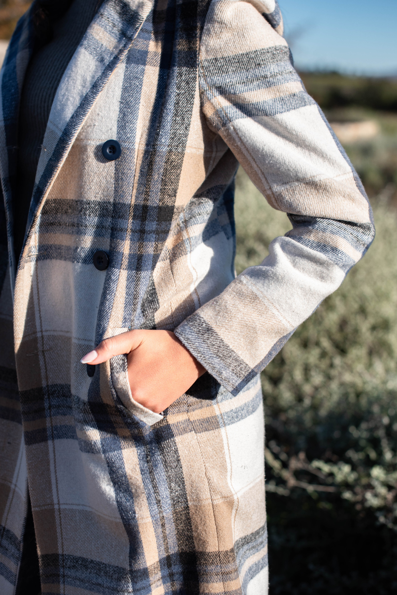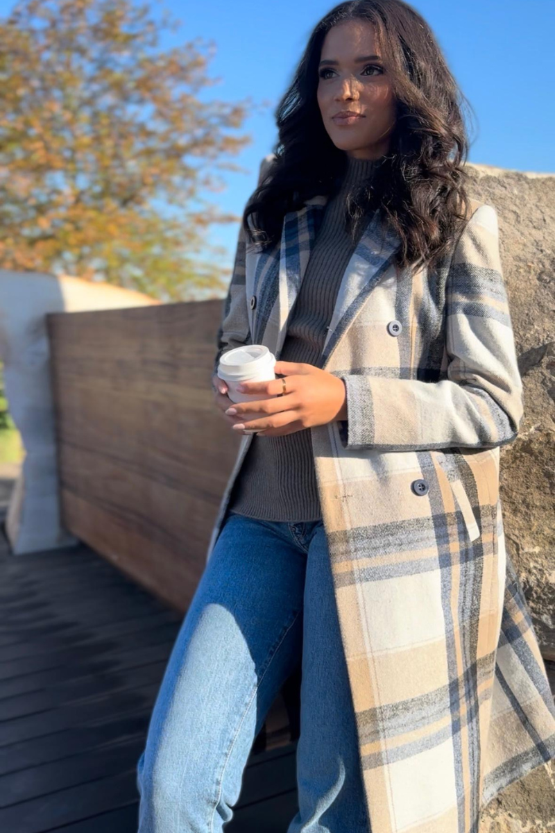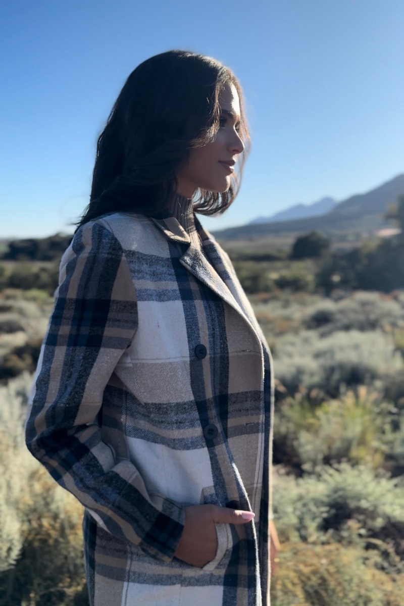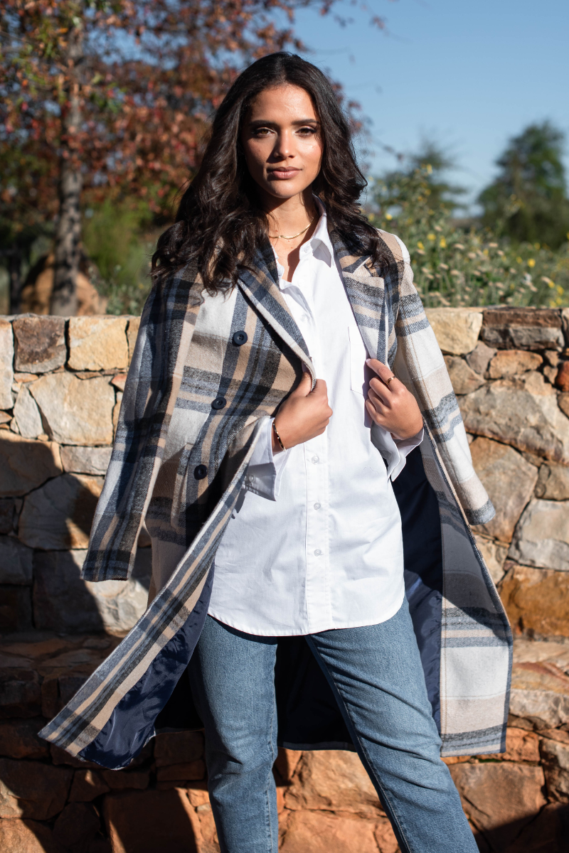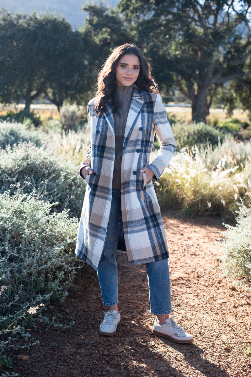 This coat is designed from a high-quality wool blend, making it the perfect warm staple. The versatile navy blue & cream check pattern makes for a timeless piece that will be your go-to outerwear season after season.