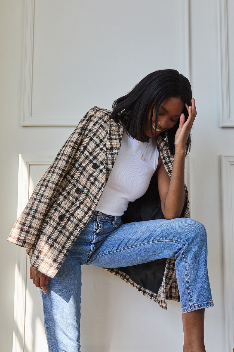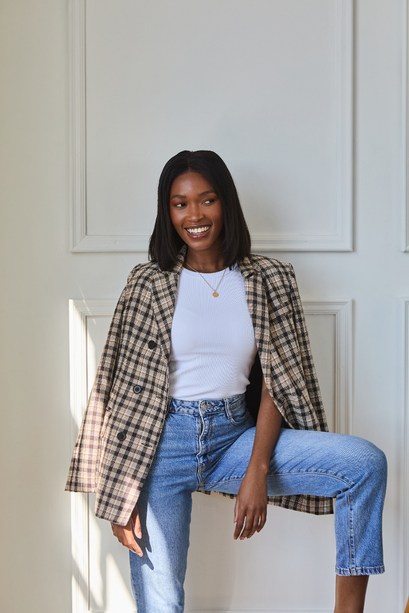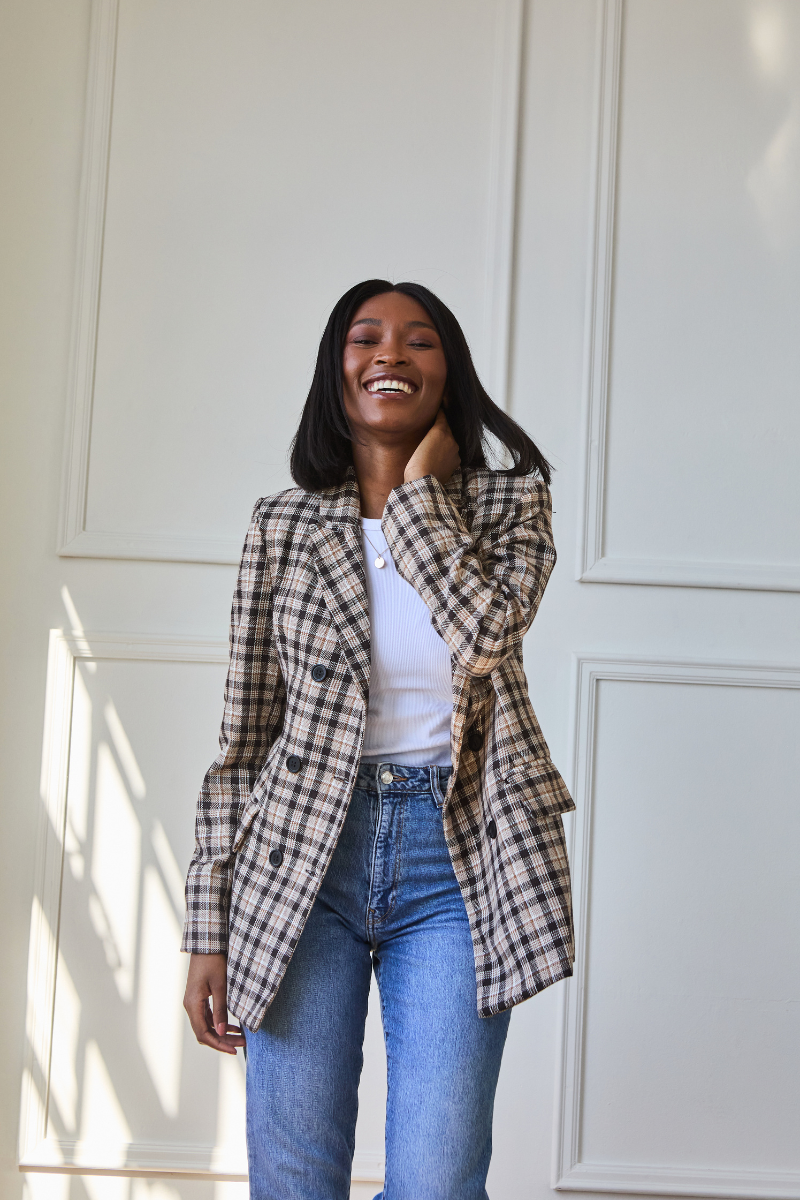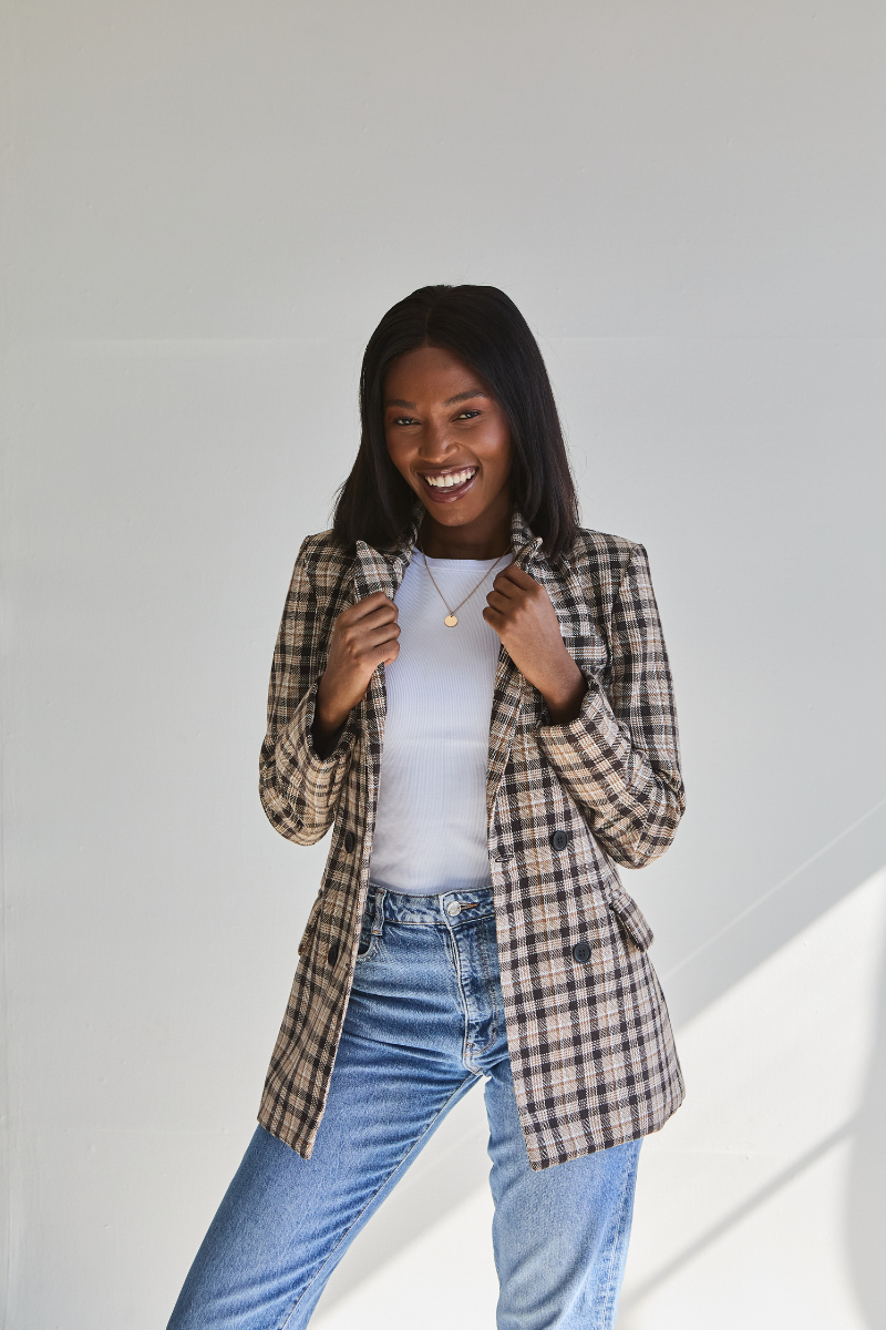 Double Breasted Tweed Blazer | Brown Check (pre-order)