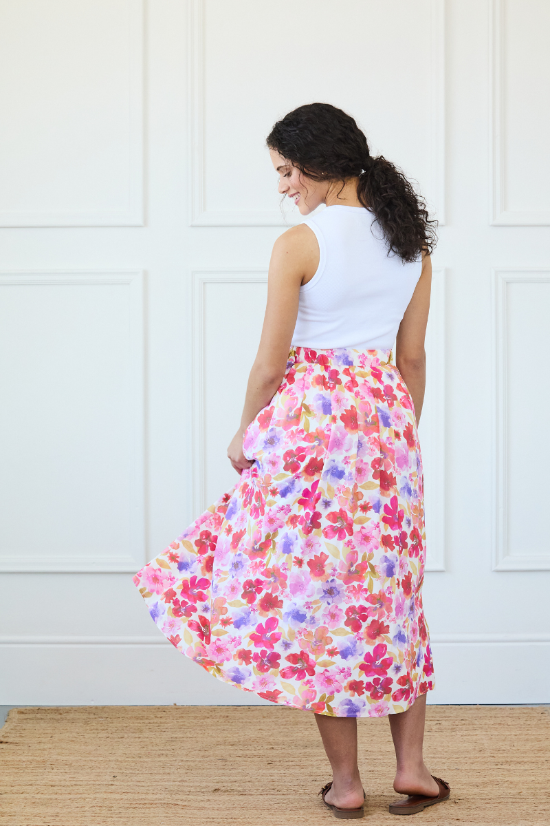 This Floral Linen Pleated Skirt is all about easy elegance. Made from a stunning linen blend imported from Portugal, it feels just as good as it looks. The pleated detail around the waist adds a soft touch of charm, while the A-line shape makes it beautifully flattering.